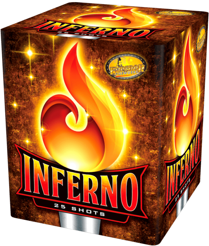 Each Shot ejecting white glitter mines to Red Coconut with White Glitter, Golden Willow with Red Stars, Silver Coconut with Red Glitter, Brocade with Blue Stars, and a finale of Purple Coconuts with Crackling Chrysanthemum.