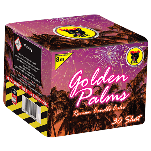 Golden Palms is a roman candle cake from Black Cat Fireworks. An awesome aerial display featuring beautiful brocades.