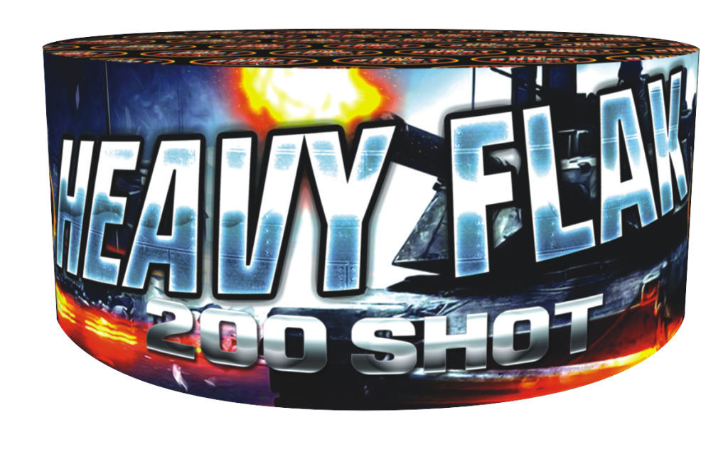 A 200 shot barrage of rapid firing effects with Red, blue & green with timed rain comet, timed rain & whistle, burst blue star & timed rain, burst purple star & crackling chrysanthemum.