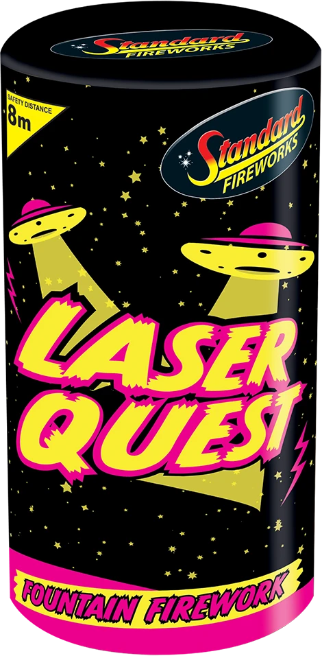 A real retro 80’s feel to it. Lasting 90 seconds, Laser Quest produces gold chrysanthemums and orange stars, silver crackle with purple and green stars, silver fountain with red and green bees and a lively finale of silver crackle with red stars.