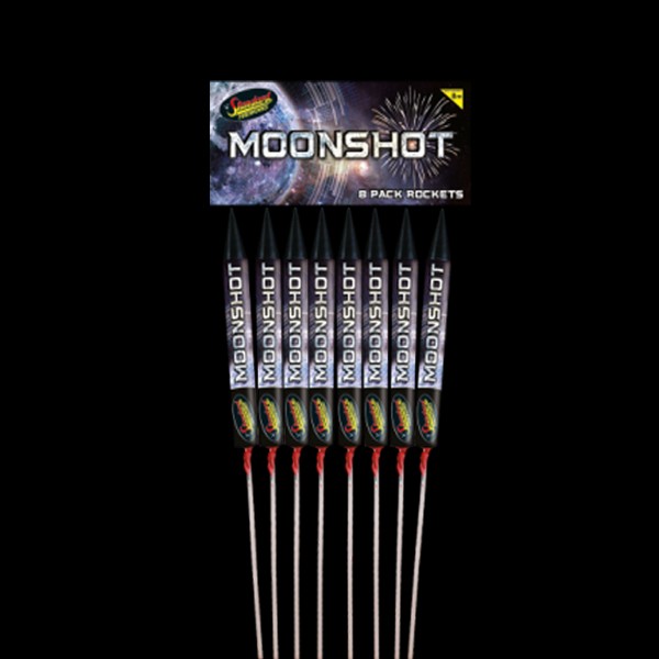 8 multi-effect rockets including green star, red star, blue star, purple star and crackle, all with silver fish.