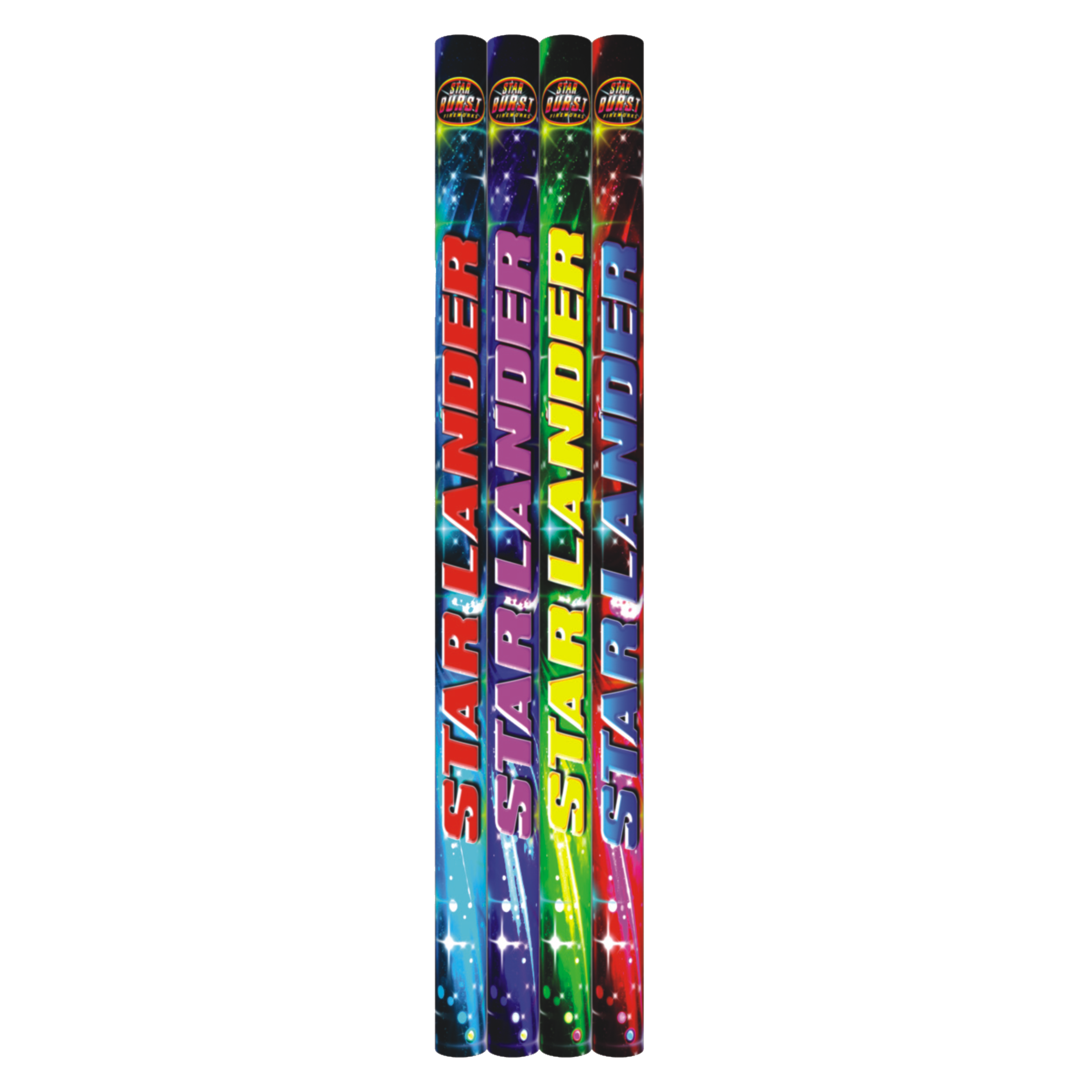 4 assorted colours in this pack with each Roman Candle producing 5 shots. Colours include Red, Green, Gold & Silver. Contains 4 Roman Candles in a retail pack.